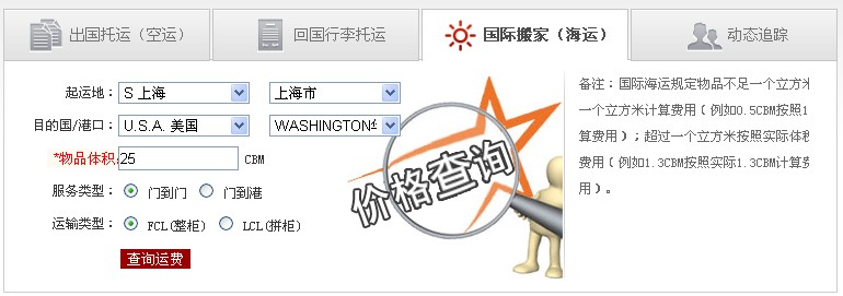 海龙国际主营移民、留学、海外工作的行李托运、国际搬家等业务,海运、空运随您选!以下是出国海运搬家20尺集装箱私人物品去美国的价格: