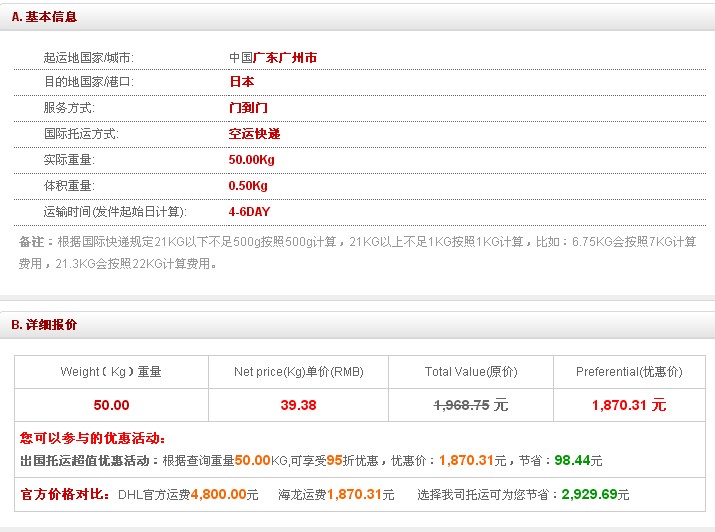 答:顺丰走国内件比较好,国际件刚开通没多久,还在试营阶段,所以建议选择海龙国际行李托运,一般一个星期左右就到了。下面对比下价格,海龙国际的行李托运价格有明显的优势,且报价里无任何隐藏费用,中国全境都可以免费送箱、免费上门取件、提供全部的私人物品包装材料(纸箱、真空袋、真空泵、防水袋、记号笔、封箱胶、干燥剂等)、国外派送到门,根本不需要专程外出办理。