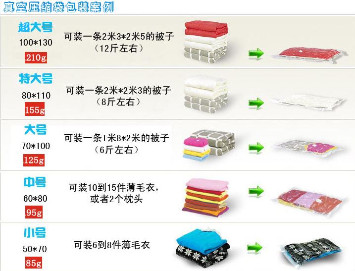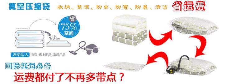 国际快递收费标准都是以体积大就按照体积收费,反之,重量大就按照重量收费。所以适当压缩物品体积可以省不少的费用。以下是我司可以免费提供的真空压缩袋(图)